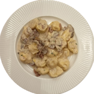 CAPPELLETTI CON CREMA DI TARTUFO PROSCIUTTO CRUDO E PORCINI