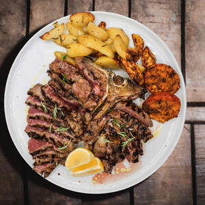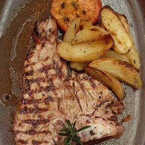 TOMAHAWK DI MAIALE CON PATATE AL FORNO