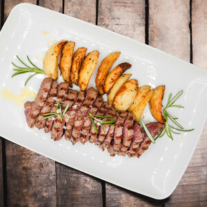 Tagliata di manzo al sale grosso e rosmarino e patate al forno